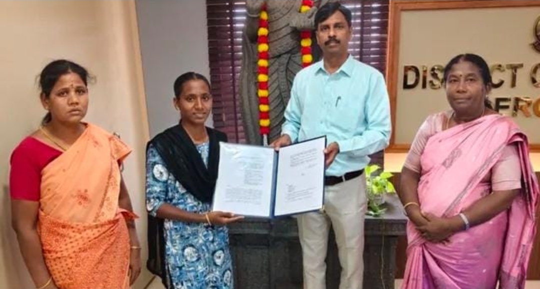 ஈரோடு மாவட்ட ஆட்சியர் அலுவலகத்தில் இன்று நடைபெற்ற நிகழ்ச்சியில், வன்கொடுமையால் பாதிக்கப்பட்ட செல்வி. நந்தினிக்கு கருணை அடிப்படையில் அரசுப் பணி நியமன ஆணையை மாவட்ட ஆட்சித்தலைவர் ச....