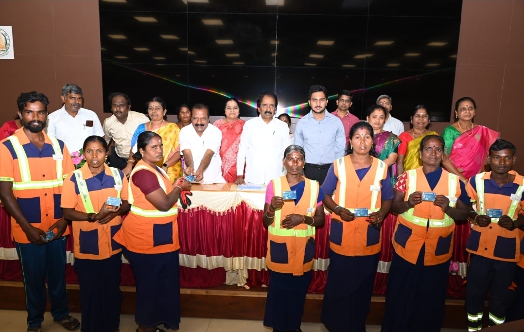 மாநகராட்சி மேயர் மு. அன்பழகன் தலைமையில் ஆணையர் லி. மதுபாலன் முன்னிலையில் தூய்மைப் பணியாளர்களுக்கு நலத்திட்ட உதவிகள் வழங்கினார்.