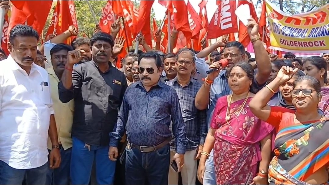 எஸ் ஆர் எம் யூ ரயில்வே தொழிலாளர்கள் திருச்சி பொன்மலை ஆர்மரிகேட் முன்பு &nbsp;துணை பொது செயலாளர் வீரசேகரன் தலைமையில் கண்டன ஆர்ப்பாட்டம் நடைபெற்றது.&nbsp;ஆர்ப்பாட்டத்தின் போது மத்திய...